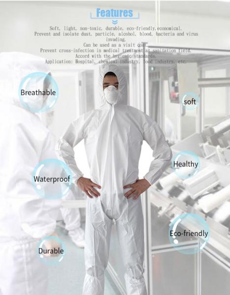 Hooded Disposable Body Suit , Waterproof Disposable Coveralls Work Safety